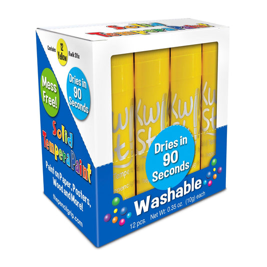 Solid Tempera Paint Sticks, Single Color Pack, Yellow, 12 Per Pack, 2 Packs