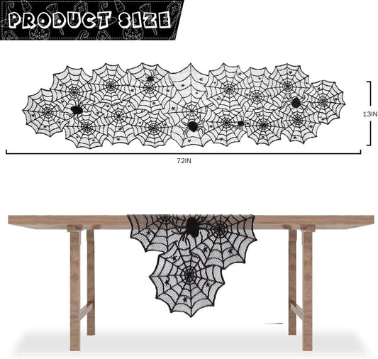 Halloween Decoration Table Runner with 3D Bats, Spider Web Black Lace Table Runner for Kitchen Dinner Table, Halloween Party Decoration Indoor - 13 X 72 Inch