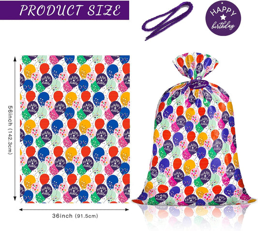 56" Large Birthday Plastic Gift Bag - Colorful Balloon with Confetti Design for Kids Birthdays, Parties or Celebrating - 56" H X 36" W