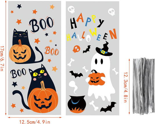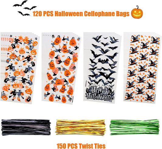 Halloween Cellophane Bags,120Pcs Halloween Clear Cellophane Candy Gift Treat Bags for Halloween Party Favors Supplies