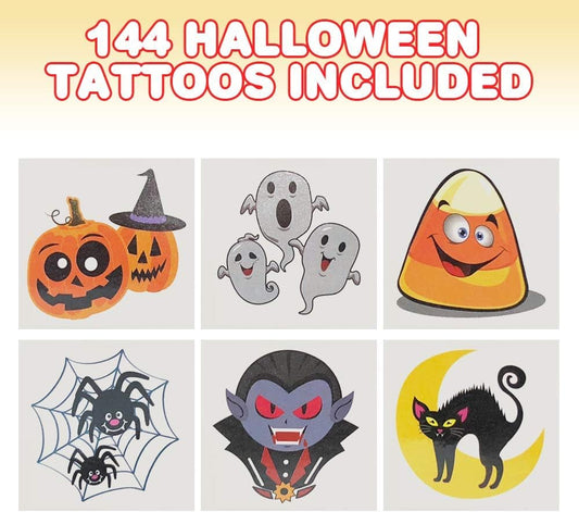 Halloween Temporary Tattoos for Kids - Pack of 144-2 Inch Non-Toxic Tats Stickers for Boys and Girls, Best for Halloween Party Favors, Treats, Décor, Goodie Bags - 6 Assorted Designs