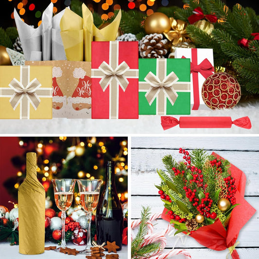 Christmas Tissue Paper 80 Sheets Red Green and Gold Wrapping Tissue Paper Bulk 14X20 Inch Multicolor Xmas Tissue Paper for Gift Bag Wrapping DIY Crafts Filler Christmas Birthday Party Decor