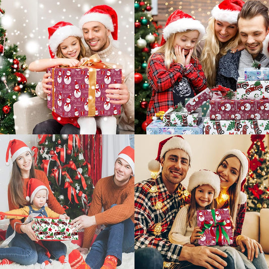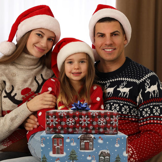 Christmas Wrapping Paper for Kids Boys Girls Man Women Holiday Party. 6 Large Sheets Gift Wrap 3 Vintage Designs, Red & Black Plaid with Snowflake, Pine and Gifts,26.7 Inch X 37Inch per Sheet
