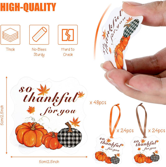 48 Pieces Thanksgiving Autumn Pumpkin so Thankful for You Gift Tags with Rope Pumpkin Thank You Present Tag Thanksgiving Pumpkin Hanging Label Thankful Party Favor Tags