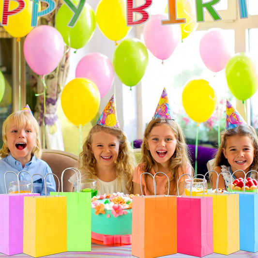 24Pcs-8 Colors Party Favor Gift Tteat Bags with Handles, Halloween Candy Bags, Rainbow Goodie Bags for Halloween, Christmas, Kids Birthday, Party Supplies, Wedding, Baby Shower