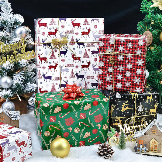 Christmas Wrapping Paper for Women Men Boys Girls,12Pcs Xmas Gift Wrapping Paper with Reindeer, Christmas Tree, Snowflakes, "Merry Christmas" Words, Candy Canes, Bells, Holiday Gift Wrap 20×29 Inch
