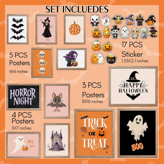 Halloween Wall Art– 12 Pcs Halloween Room Decor– Gothic Wall Decor Skeleton Posters Halloween Art Prints for Halloween Gallery Wall for Parties, Girls-Home Living Room Bedroom Decor (UNFRAMED)