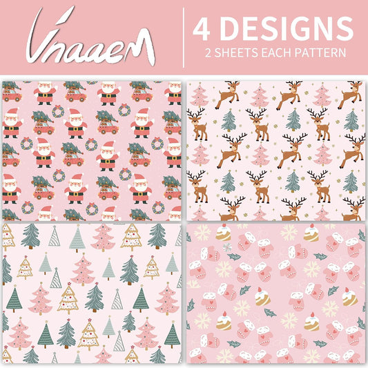 Pink Christmas Wrapping Paper for Boys Girls Kids - Cute Xmas Gift Wrap with Santa Christmas Tree Reindeer Design for Christmas Holiday Party Celebration - 20 X 28Inches per Sheet(8 Pack)