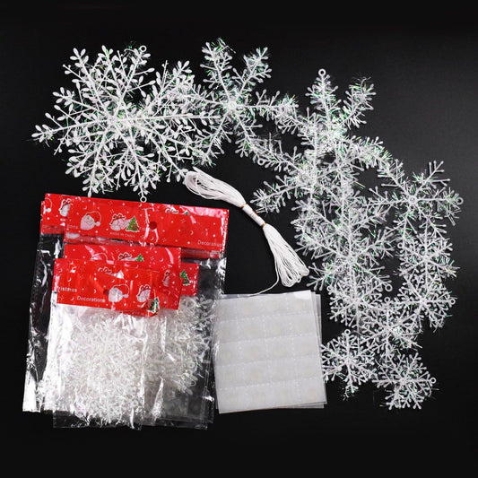 63 Pieces 4 Sizes White Christmas Snowflake Decorations Snowflake Ornaments Garland, 8 Meters White Strings and 60 Pieces round Double Side Tape for Home Christmas Holiday Party Decorations