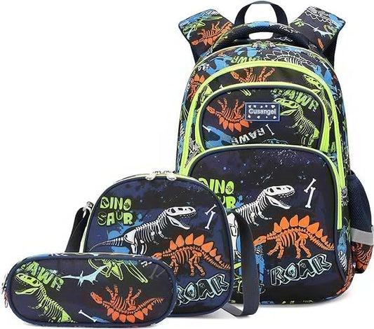 3PCS Dinosaur Backpack for Boys, 16 Inch Kids Water Resistant Preschool Bookbags, Cool Elementary Kindergarten School Backpacks and Lunch Box
