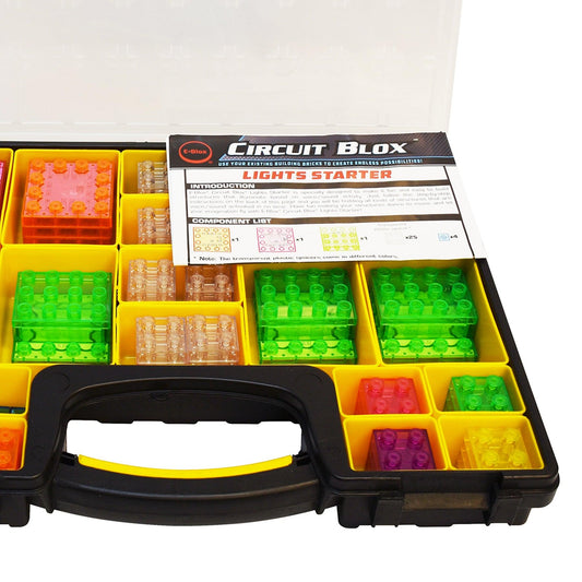 Circuit Blox Lights Starter, Circuit Board Building Blocks Classroom Set, 128 Pieces
