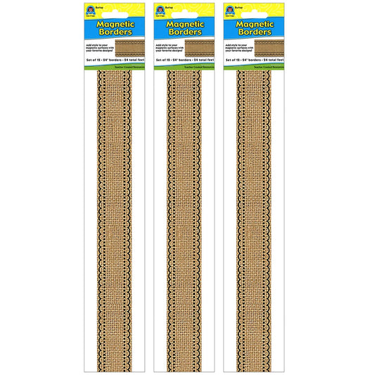 Burlap Design Magnetic Border, 24 Feet Per Pack, 3 Packs