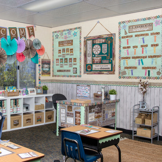 Home Sweet Classroom Reclaimed Wood Design Border Trim, 35 Feet Per Pack, 6 Packs