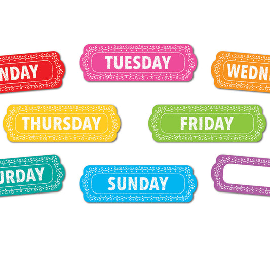 Magnetic Die-Cut Timesavers & Labels, Days of the Week, Chalk Loops, 8 Pieces