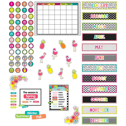 Simply Stylish Tropical Pineapple Calendar Bulletin Board Set, 92 Pieces