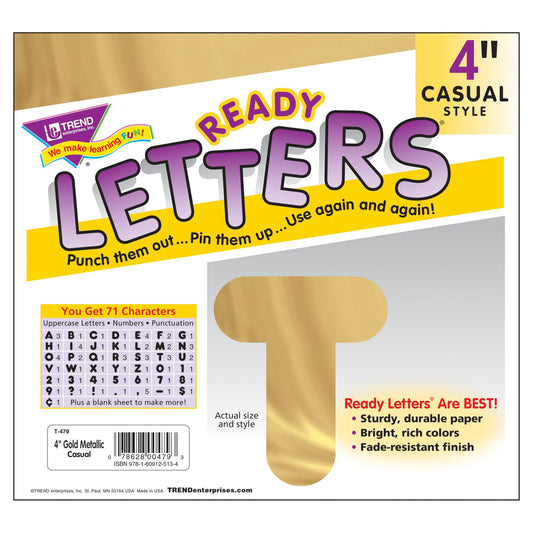 Gold Metallic 4" Casual Uppercase Ready Letters®, 71 Per Pack, 3 Packs