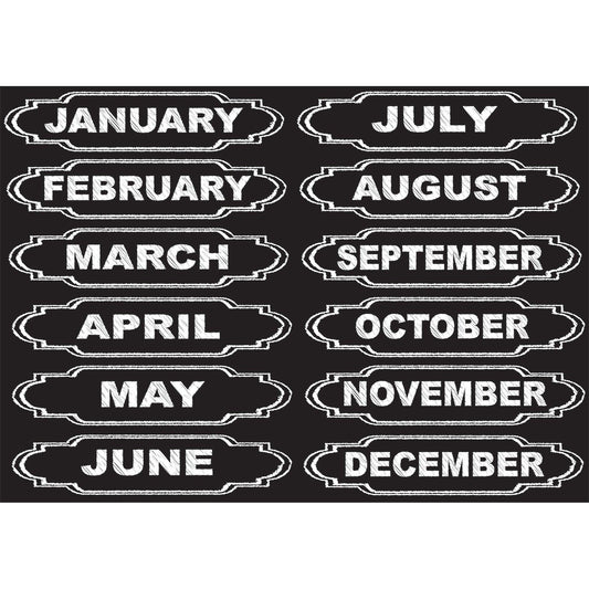 Die-Cut Magnets, Chalkboard Calendar Months, 12 Per Pack, 6 Packs
