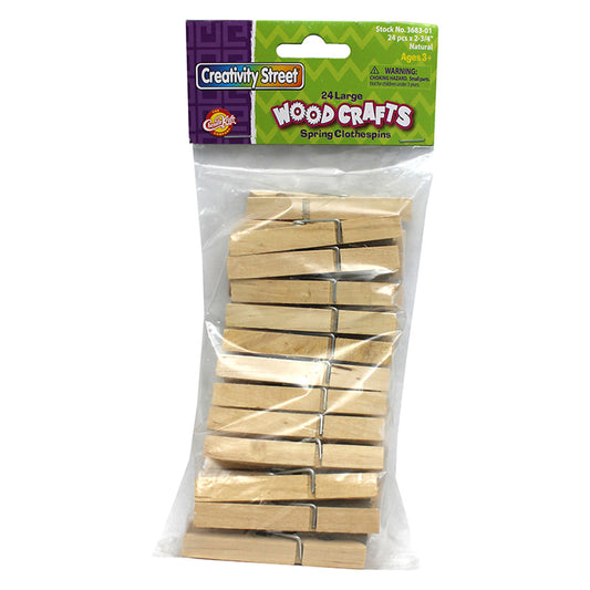 Spring Clothespins, Natural, Large, 2.75", 24 Pieces