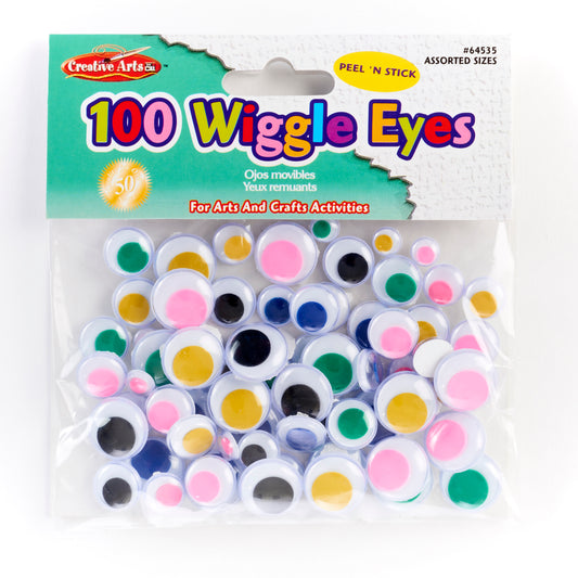 Wiggle Eyes, Peel'n Stick, Assorted Colors and Sizes, Bag of 100