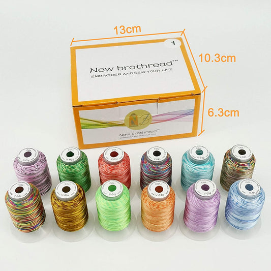 12 Colors Variegated Polyester Embroidery Machine Thread Kit 500M (550Y) Each Spool for Brother Janome Babylock Singer Pfaff Bernina Husqvaran Embroidery and Sewing Machines-Assortment1
