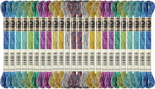 24 Pieces Metallic Embroidery Floss Multicolor Embroidery Skein Threads Glitter Embroidery Thread Cross Stitch Polyester Thread for Friendship Bracelets DIY Embroidery Thread Crafts