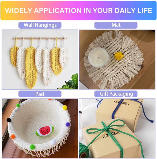 Macrame Cord, 3Mm X 396 Yards Natural Cotton Twine, 12 Rolls 4 Strand Colored Macrame String, Colorful Cotton Rope for DIY Crafts Knitting, Artworks, Wall Hanging, Plant Hangers