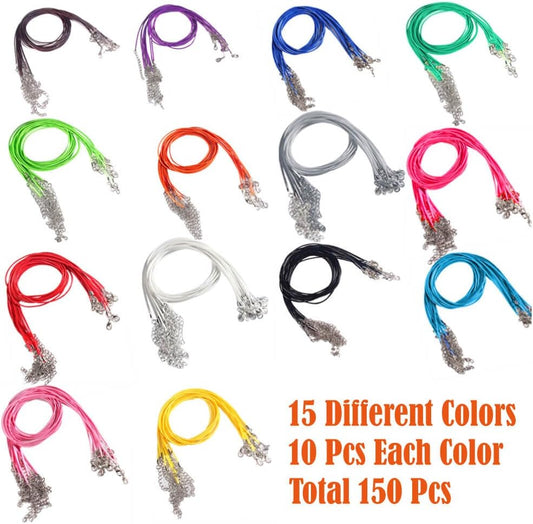 150PCS 1.5Mm Waxed Cotton Necklace Cord Bulk with Clasp for DIY Jewelry Making, Mix Color (18”)