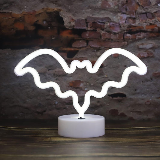 LED Neon Bat Lights Purple, Bat Shape Neon Signs Night Lights Battery Operated Desk Table Lamp for Bedroom, Bar, Wall, Halloween Decor-Bat with Holder Base(Purple)