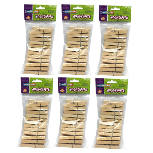Spring Clothespins, Natural, Large, 2.75", 24 Per Pack, 6 Packs