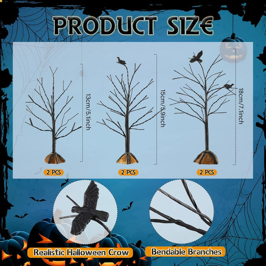 6 Pieces Mini Decor Trees Small Holiday Branch Village Trees Artificial Model Trees Miniature Trees Village Displays Tree for House Garden Festival Decorations, 3 Sizes(Crows Tree Figurine)