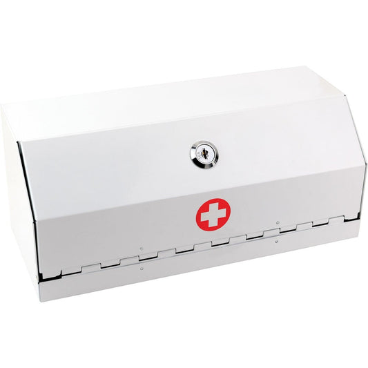 Locking Prescription Drug Cabinet, Heavy-Duty Steel Construction, White