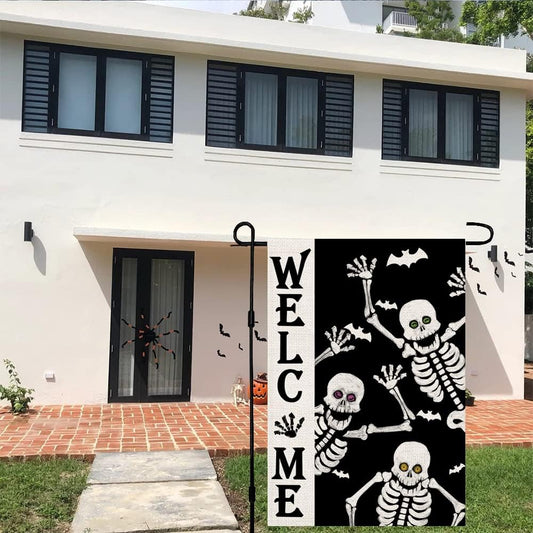 Halloween Garden Flags for outside Decoration, Spooky Boo HEY Skeleton Cat Small Yard Flag for Outdoor Seasonal Decor 12X18 Inch Vertical Double Sided