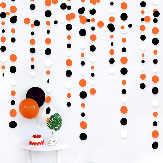46Ft Buffalo Plaid Polka Dot Garlands Black Red Checkered Paper Circle Dot Streamer Banner for Baby Shower Bridal Shower Birthday Bachelorette Christmas Holiday Halloween Party Decorations Supplies