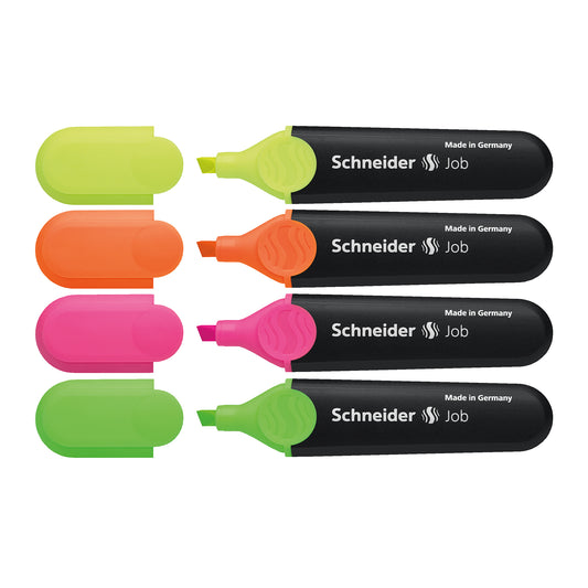 Job Highlighter, 1 + 5 mm Chisel Tip, 4 Assorted Ink Colors (Pink, Yellow, Orange, Green)