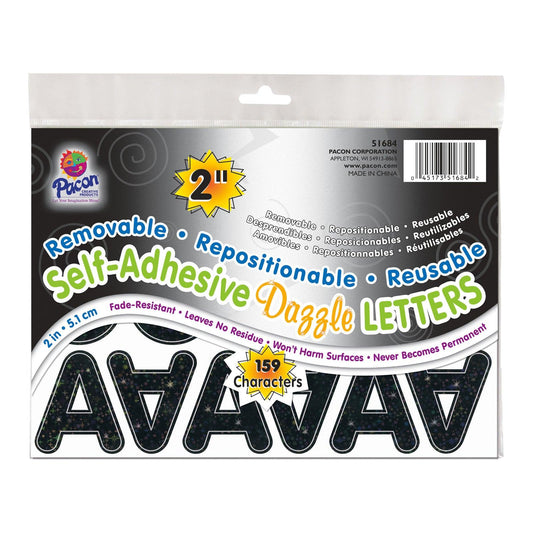 Self-Adhesive Letters, Black Dazzle, Puffy Font, 2", 159 Per Pack, 2 Packs