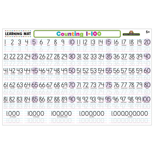 Placemat Studio™ Smart Poly® 1-100 Counting Learning Placemat, 13" x 19", Single Sided, Pack of 10