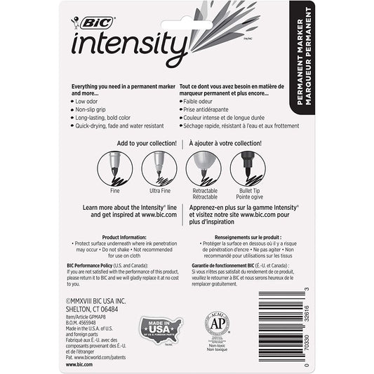 Intensity Permanent Marker, Fine Point, Assorted Colors, 8 Per Pack, 3 Packs