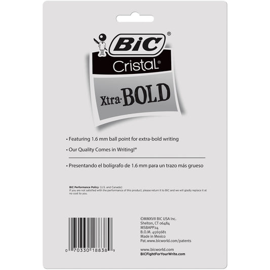 Cristal® Xtra Bold Fashion Ballpoint Pen, Medium Point (1.6mm), Assorted Colors, 24-Count