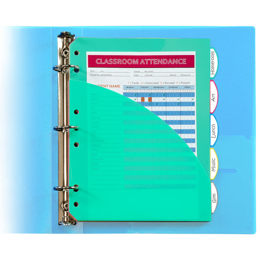 Mini Size 5-Tab Poly Index Dividers, Assorted Colors with Slant Pockets, 12 Sets