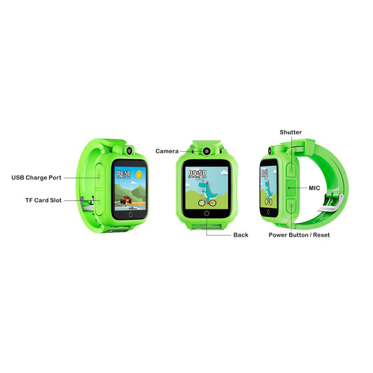 KW1 Smart Watch for Kids with Educational Games, HD Touch Screen, Camera, and MP3 Music Player, Green
