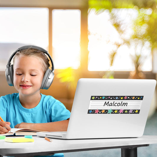 Star Bright Colorful Stars on Black Name Plates, 36 Per Pack, 6 Packs