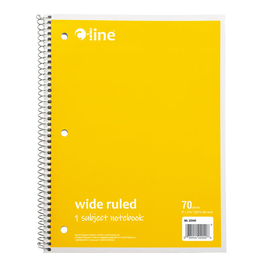 1-Subject Notebook, 70 Page, Wide Ruled, Yellow, Pack of 12