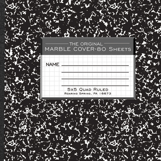 Composition Book, 5x5 Graph, 80 Sheets, 9.75" x 7.5", Black Marble, Pack of 6
