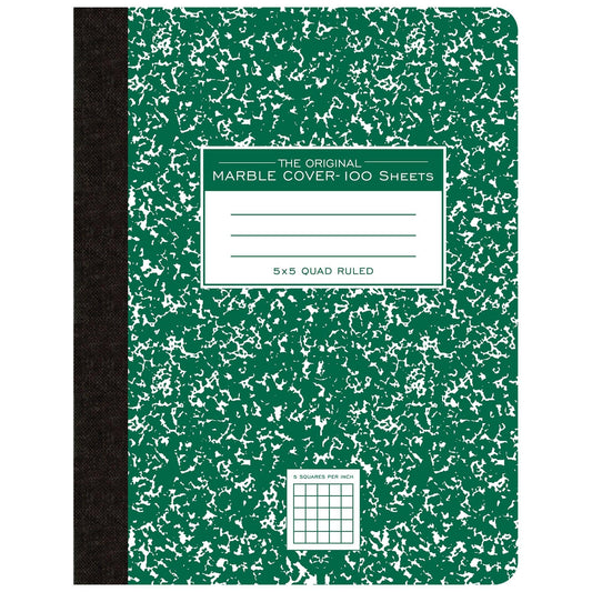 Composition Book, 5x5 Graph, 100 Sheets, 9.75" x 7.5", Green Marble, Pack of 6