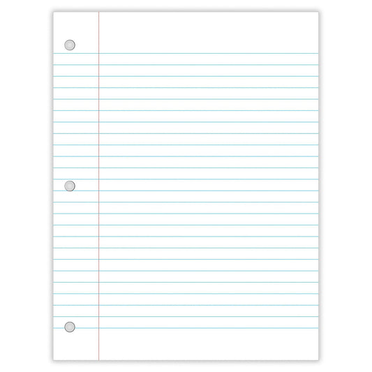 Filler Paper, Wide Ruled, 8" x 10-1/2", White, 100 Sheets Per Pack, 12 Packs