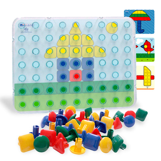 Jumbo Peggy Medium - Stacking Peg Toy with Illustrated Cards and 9 Linking Boards and 36 Pegs