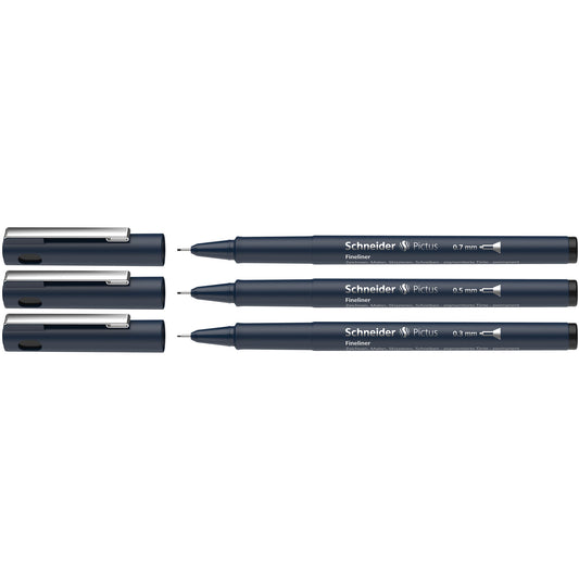 Pictus Fineliners, Wallet, Black Ink, Assorted Sizes, 3 Per Pack, 3 Packs