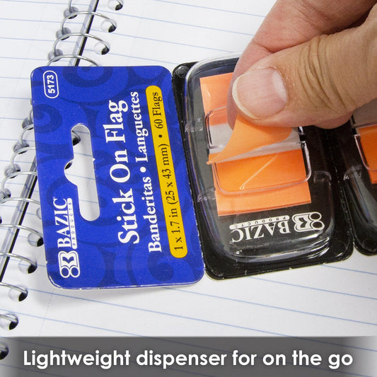 Assorted Neon Color Standard Flags with Dispenser, 60 Per Pack, 12 Packs