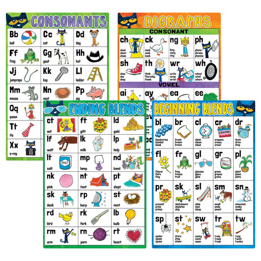 Pete the Cat Phonics Small Poster Pack, 11" x 15-3/4", Pack of 8