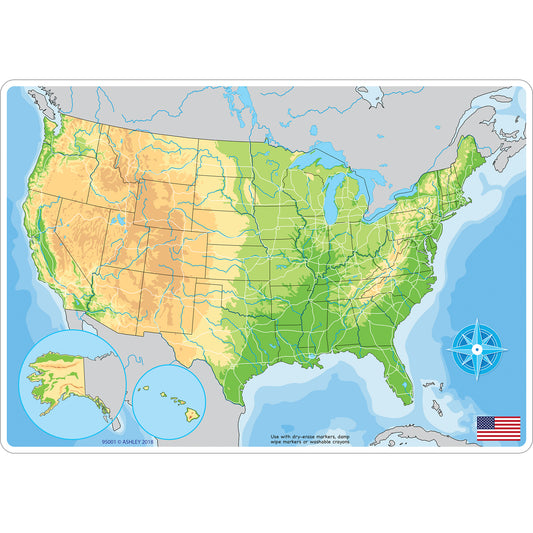 Smart Poly™ Learning Mat, 12" x 17", Double-Sided, U.S. Physical Map